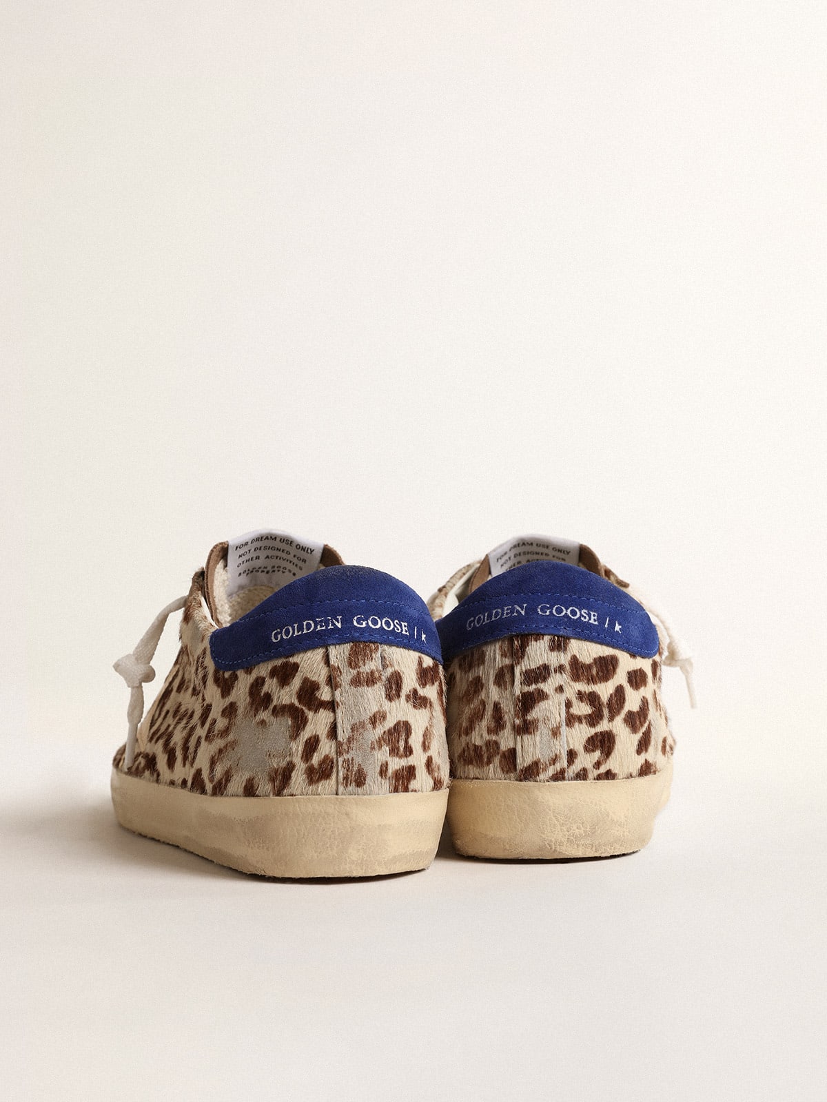 Un icono atemporal, pero en continua evolución. En Golden nos encanta reinterpretar nuestros clásicos constantemente, cada vez bajo una luz diferente. Estas Super-Star LTD con pala de piel efecto potro con estampado leopardo en los tonos beige y marrón claro se distinguen por su estrella de piel laminada dorada y su refuerzo del talón de ante azul. Y como toque final, la lengüeta y las aplicaciones de ante color marrón claro y los cordones blancos.